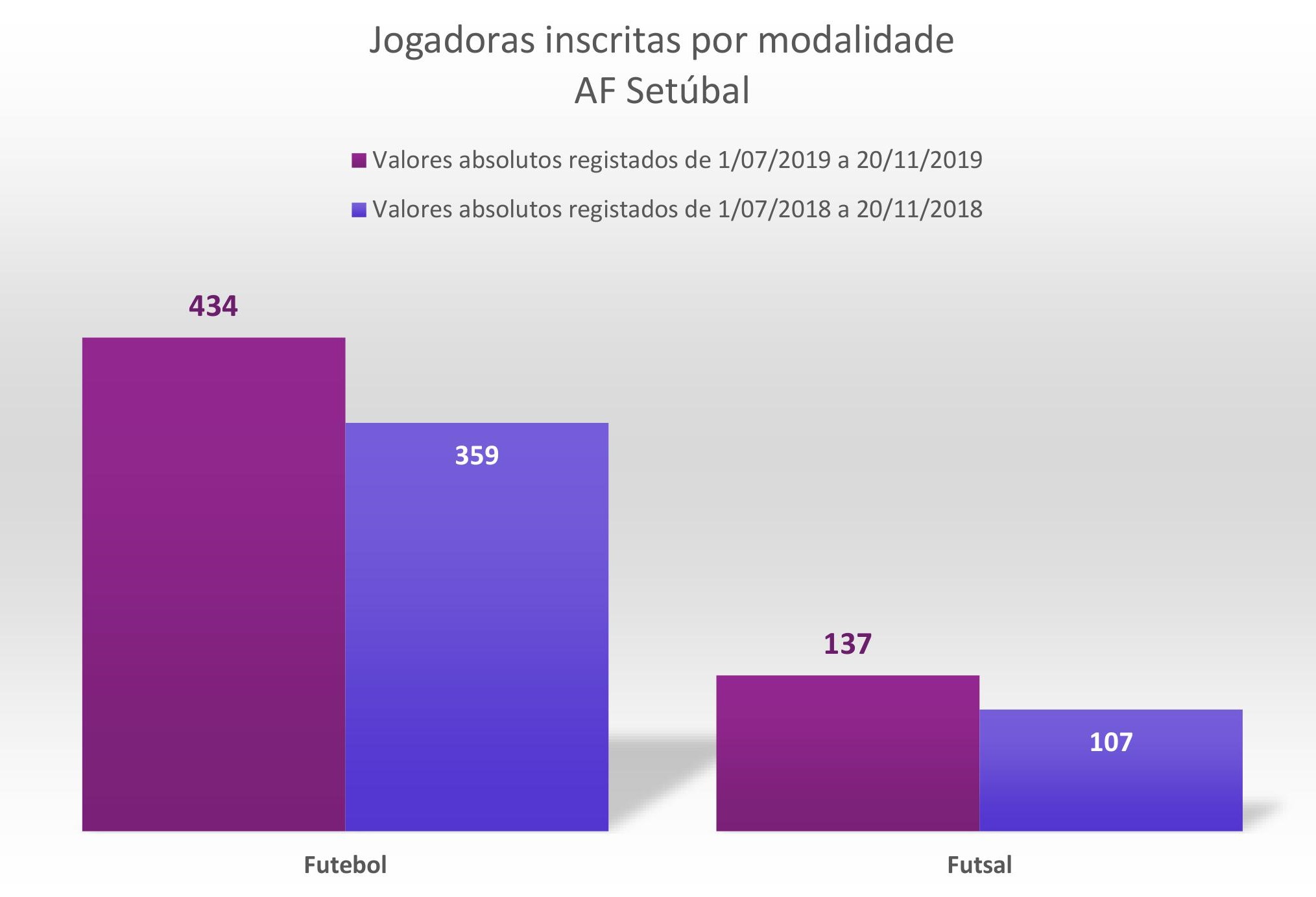 O género feminino (futebol + futsal) assume um ganho de 22,5 por cento, e no masculino a subida, em termos comparativos, é de 6,4 pontos percentuais.