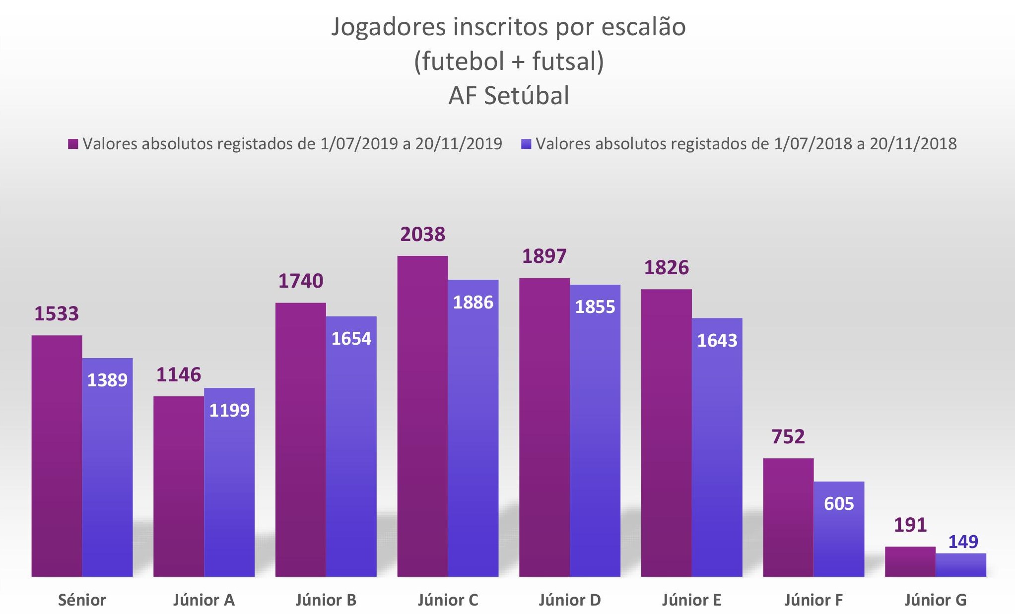 Recorde-se que no final da pretérita temporada (30 de junho de 2019), a AF Setúbal atingiu o valor histórico de 12 374 inscrições de praticantes, no total.