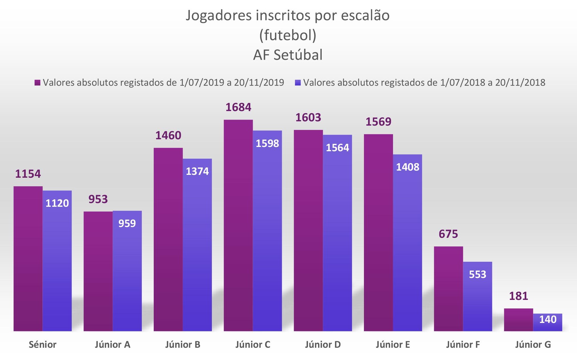 Ainda no que respeita aos recentes números de avaliação relativos à época em curso, nota para o crescimento absoluto em todos os escalões etários à exceção dos juniores A.