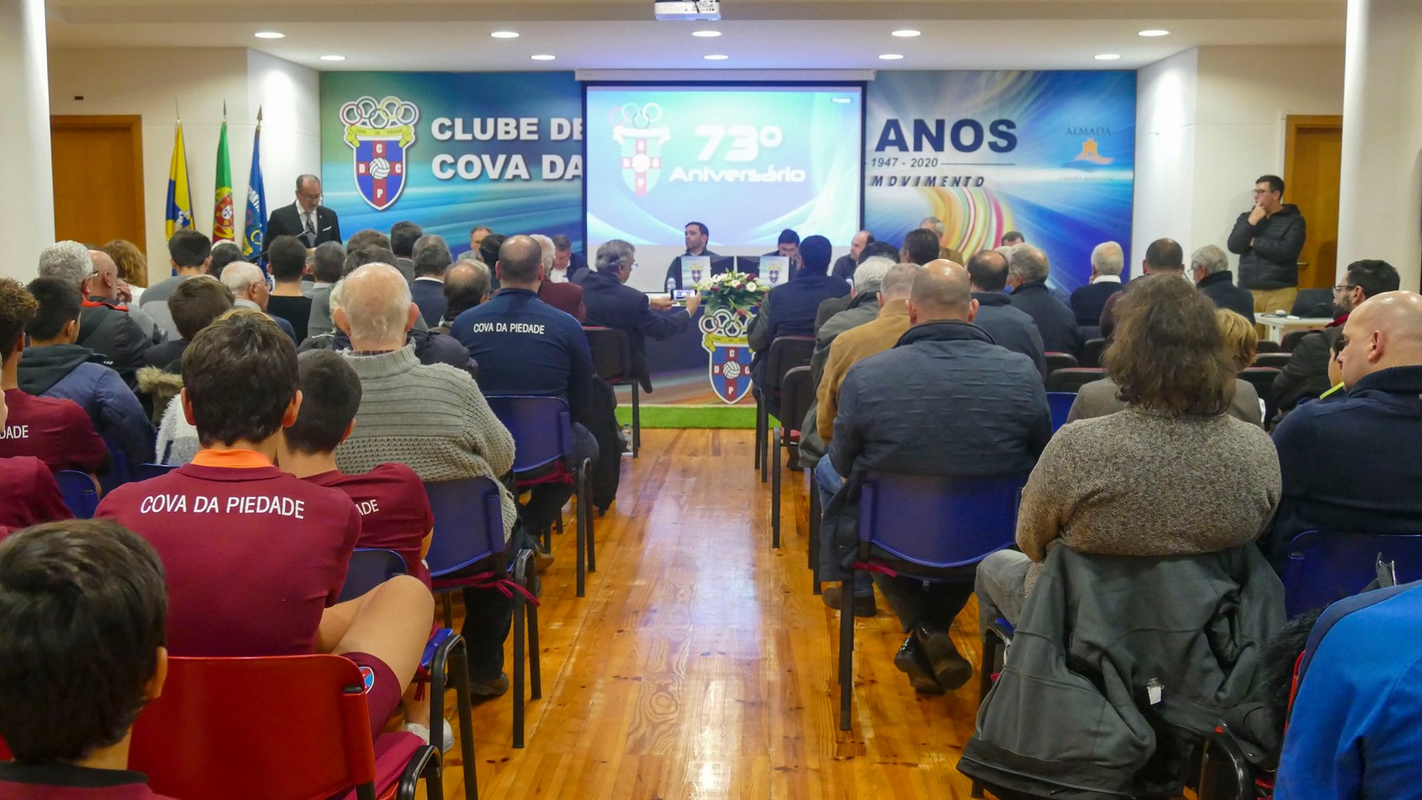 Cerca de 150 pessoas lotaram, esta terça-feira, ao final da tarde, o Salão Nobre do Estádio Municipal José Martins Vieira, palco da sessão solene comemorativa do 73.º aniversário do Clube Desportivo da Cova da Piedade.