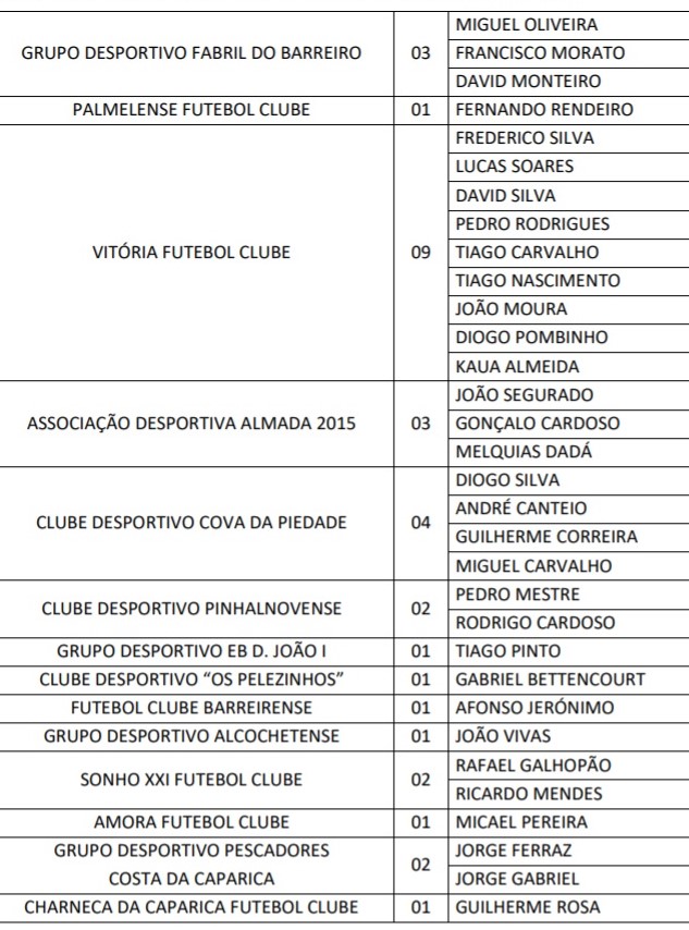 João Pedro Valente, treinador distrital de futebol da AF Setúbal, convocou para esta etapa de preparação para o evento interassociativo um total de 32 jogadores, oriundos de 14 emblemas.