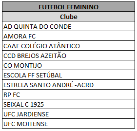 De forma mais detalhada, foram submetidas 46 candidaturas em futebol masculino, 11 – futebol feminino, 23 – futsal masculino, e 5 – futsal feminino, de acordo com os seguintes quadros identificativos: