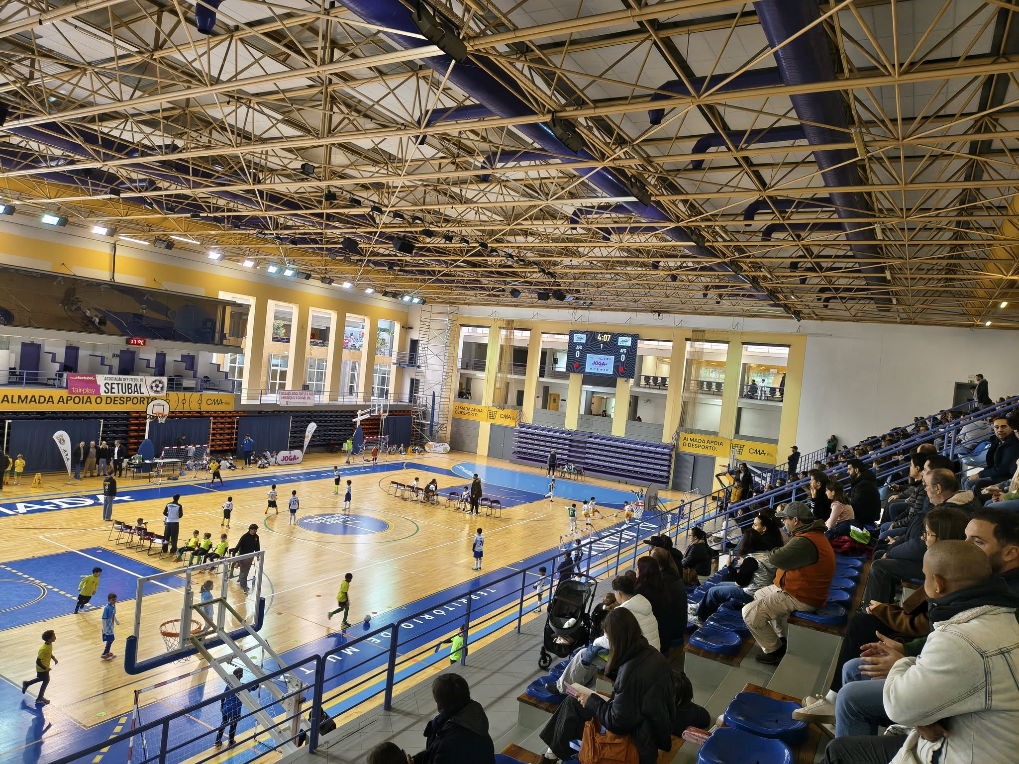 Num ambiente de especial convívio e salutar desportivismo, presenciado por largas dezenas de familiares que preencheram a bancada do recinto desportivo de excelência almadense a 7.ª ação JOGA + futsal reuniu um total de 203 meninas e meninos, nos escalões de petizes e traquinas, em 33 equipas representantes dos seguintes 12 clubes: CR Piedense, CD Colégio Minerva, CA Sta Marta do Pinhal, ADIJ Bairro Miranda, CDR Águias Unidas, CO Montijo, AF Estrelas de Setúbal /VFC, FC Barreirense, AD Quinta do Conde, AC Benfica na Charneca de Caparica, CR Sobredense, GD Alegria e Trabalho.
