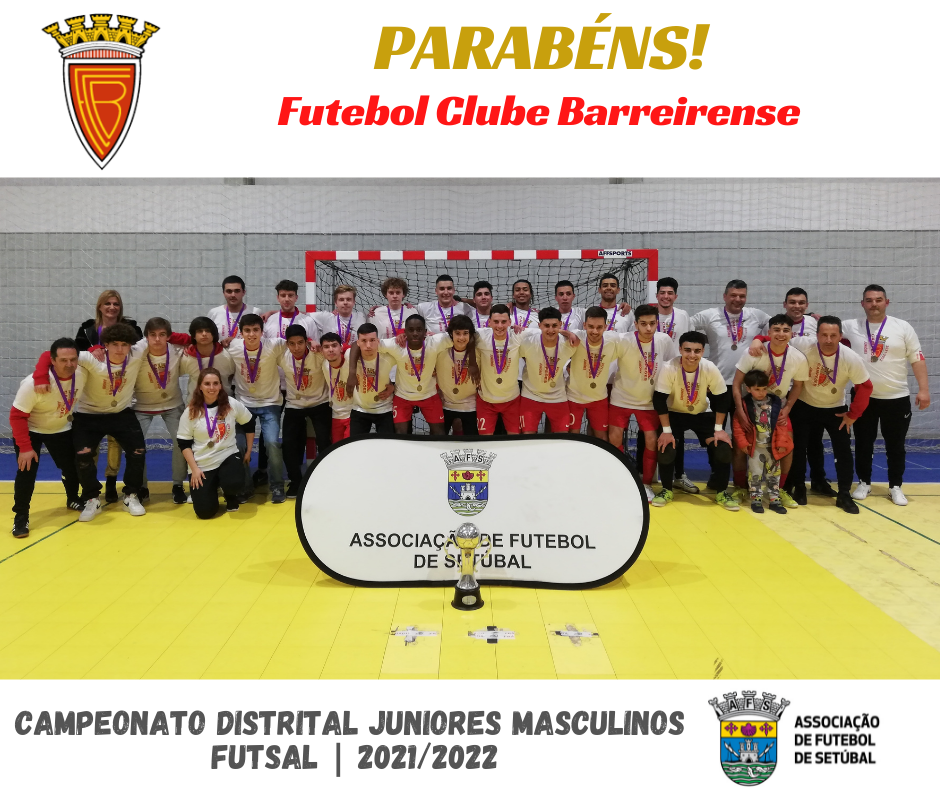 O Futebol Clube Barreirense sagrou-se campeão distrital de juniores de futsal da Associação de Futebol de Setúbal, edição 2021/2022, e comemorou o título este sábado (5), no Pavilhão da Escola Secundária de Santo António da Charneca, Barreiro.