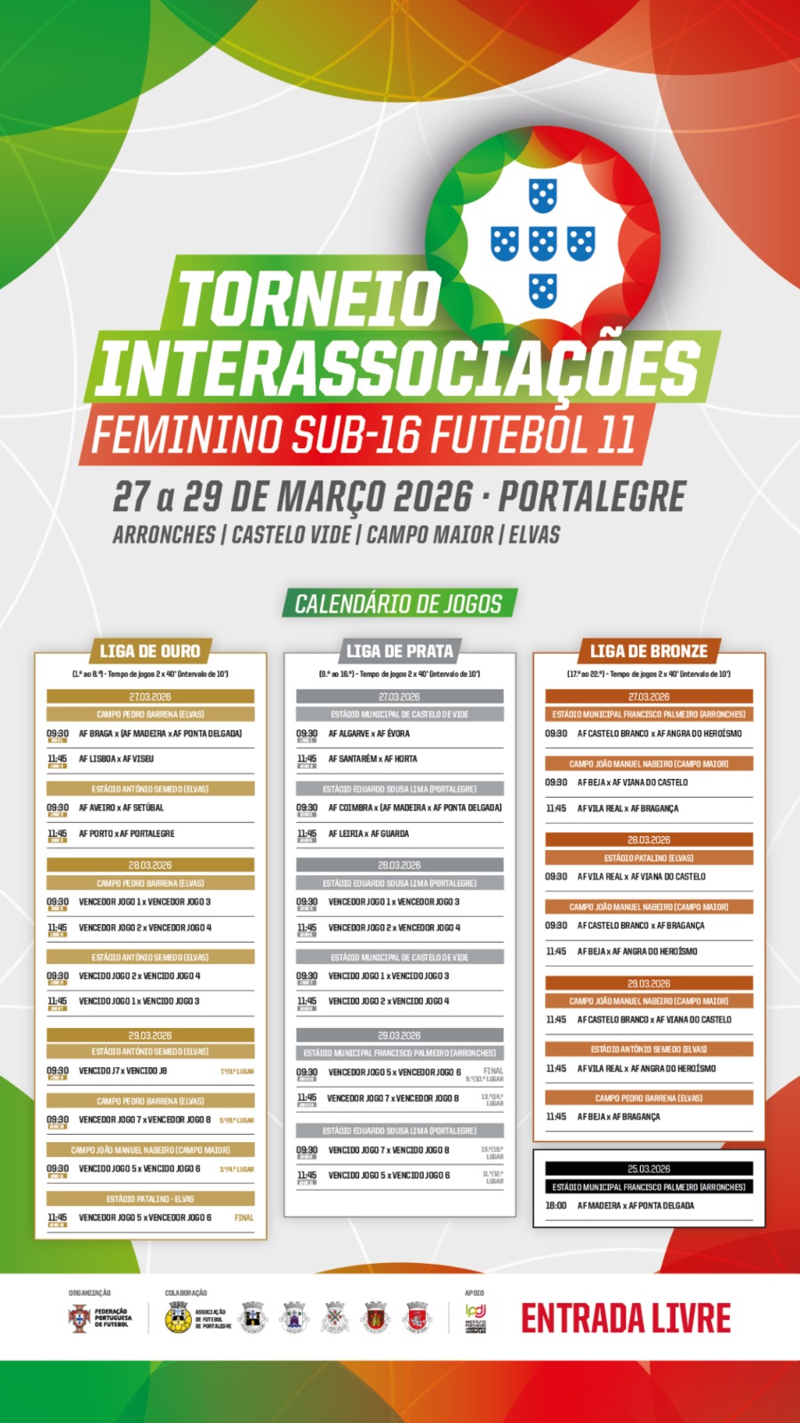 Recorde-se que a seleção da AF Setúbal, liderada pelo selecionador distrital Gonçalo Fernandes, irá começar a competição diante da congénere de Aveiro, numa partida agendada para dia 27, a partir das 9h30, no Estádio António Semedo, em Elvas.